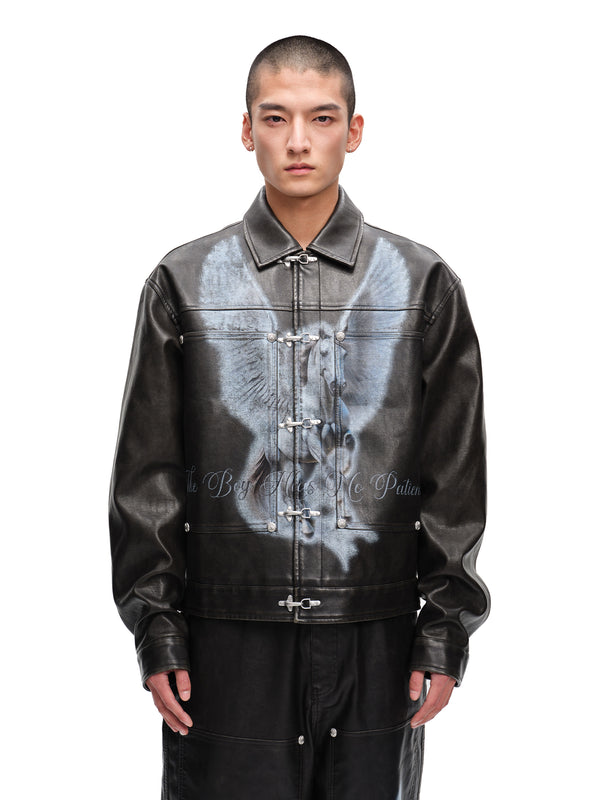 LUMINOUS DAWN KNIGHT&PEGASUS PRINTED LEATHER JACKET